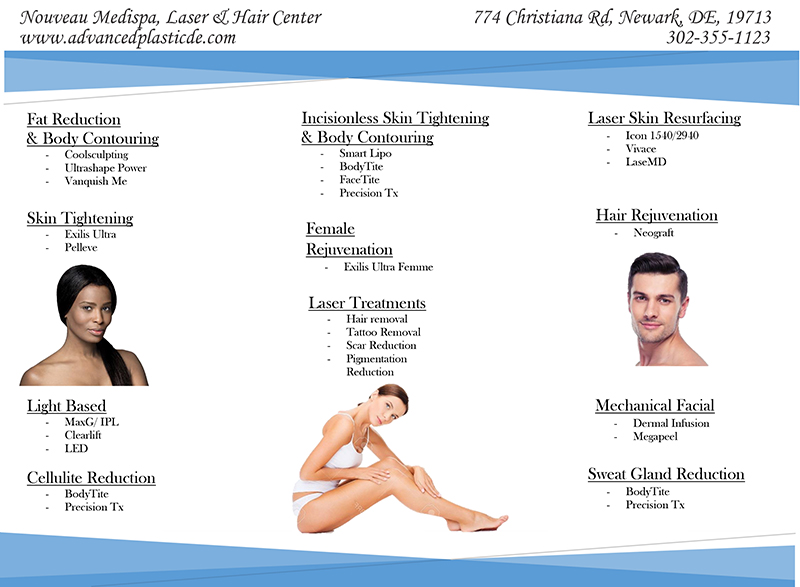 At Nouveau Cosmetic Center, we offer such noninvasive to invasive procedures to fit your needs. We call this approach Beauty for Life Lift, and is tailored for our patients depending on their current goals and expectations. Beauty for Life lift is broken into levels which include levels I- which represents the least invasive options, Level II- moderately invasive but still performed in the office setting, and Level III which represents our surgical procedures that are performed in the surgical setting such as the hospital or surgical center.